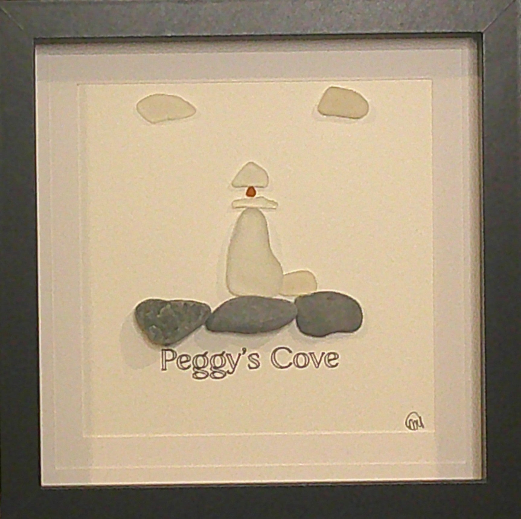 Hand crafted original sea glass picture featuring double mat with hanging hook.