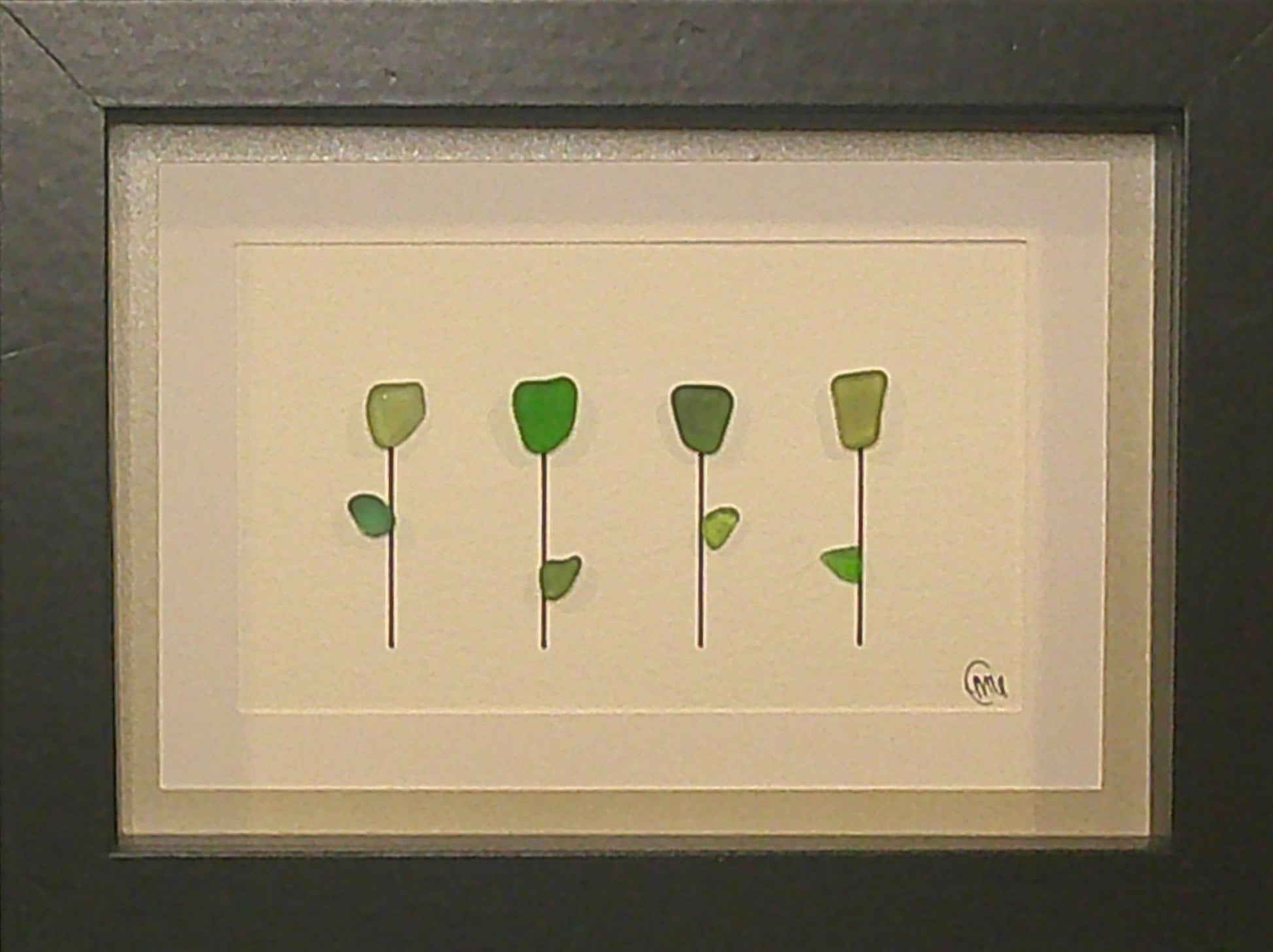 Sea Glass Picture - Flower 4 Stem 1 - 5x7