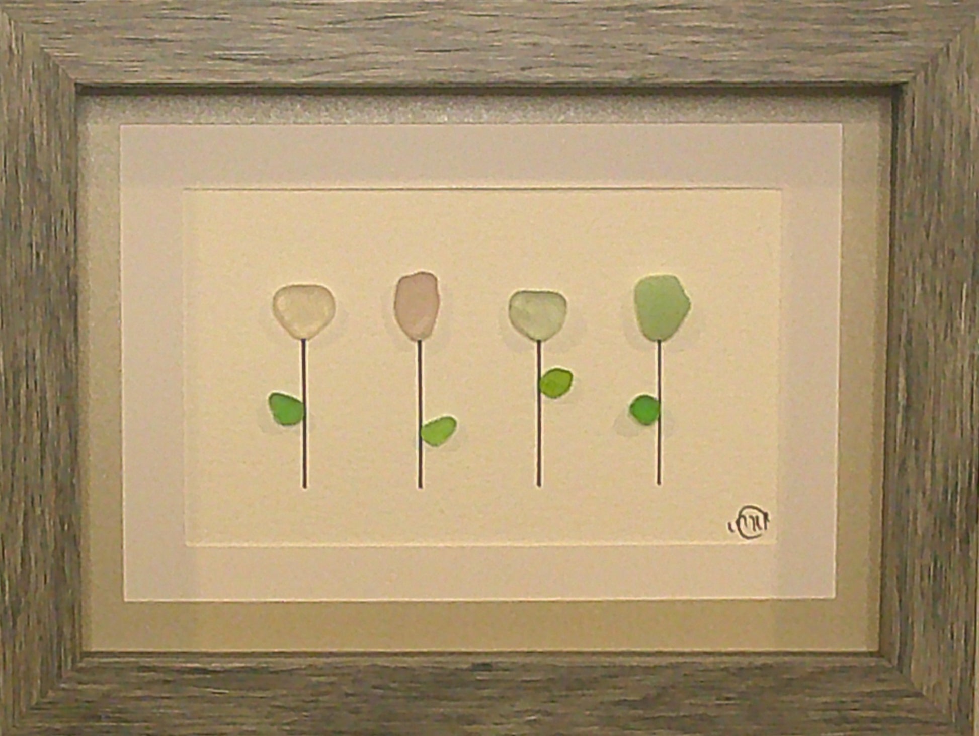 Sea Glass Picture - Flower 4 Stem 7 - 5x7